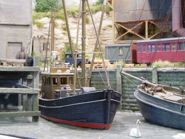 Chris Nevard's 'Arne Wharf' has been featured in a number of publications in recent months but this was my first opportunity to see the real thing. The standard of Chris's work is first class and the overall scene is such that nothing jars or stands out. It would be interesting to see it operate properly as a shunting layout but there is much to learn from this layout. It will be interesting to see whether Chris returns to OO9, I understand the next one is likely to be modern image standard gauge!